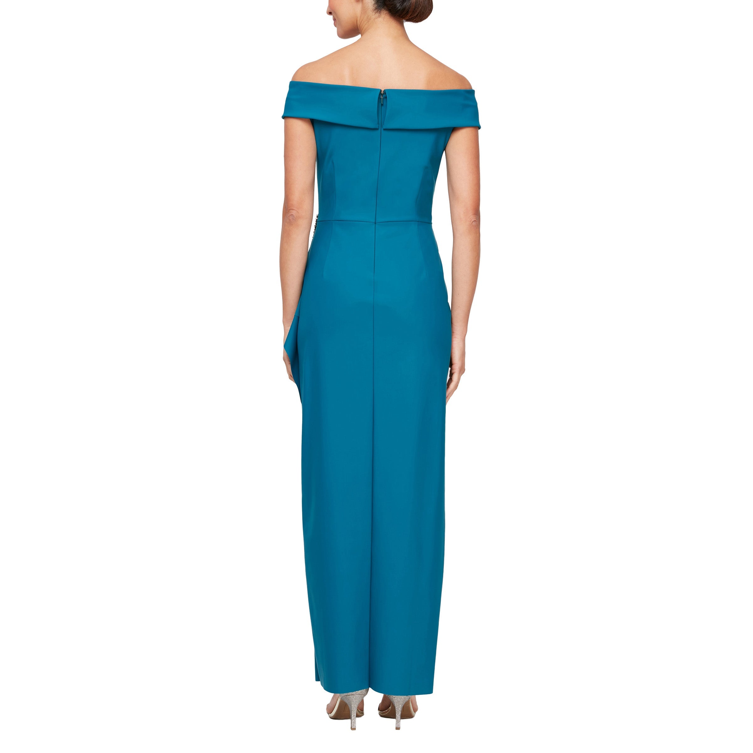 Long Off Shoulder Formal Metallic Prom Dress