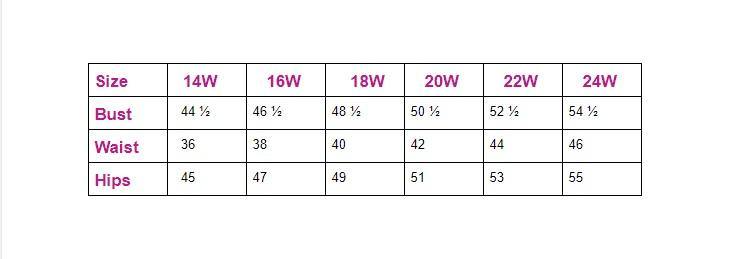 Sizes : 14W, 16W, 18W, 20W, 22W, 24W