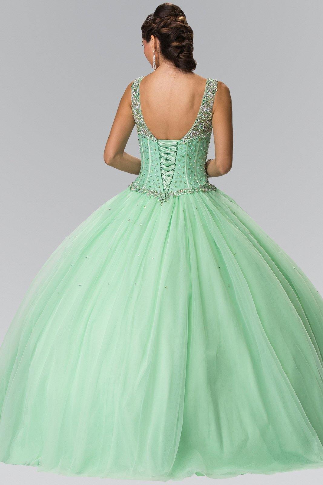 This gorgeous floor length dress features a sleeveless scoop sweetheart neckline. A-line dress with beeaded embellished bodice. Multi-layered skirt  perfect for sweet 16, debut or any special occasion or any special occasion.
