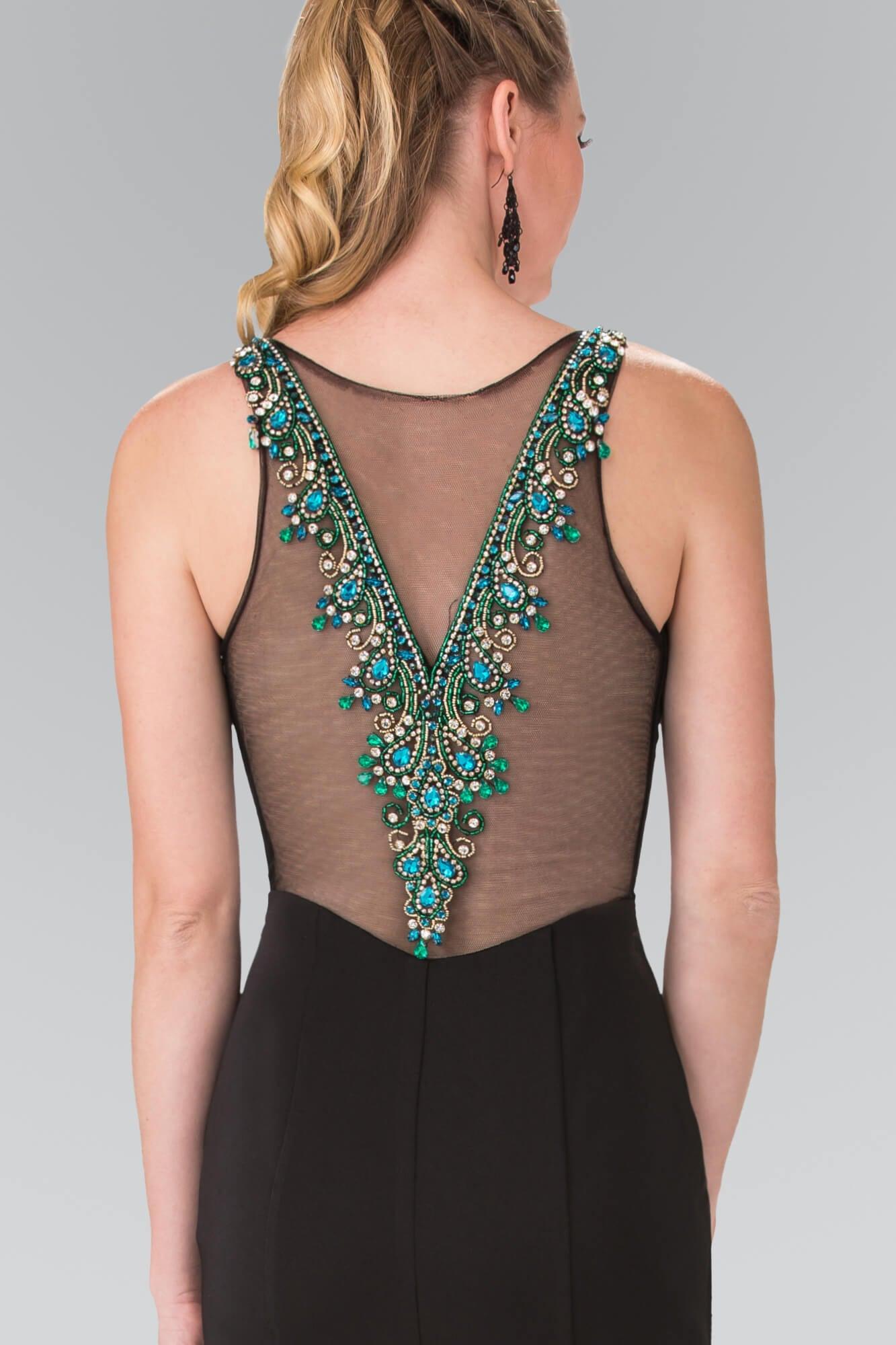 This long dress featuring a sleeveless patterned beads adorn the V-bodice and continue over the sheer back. This luxurious ensemble glides to the floor length hem in a picture perfect red carpet look. Perfect for formal, evening party or any special occasion.