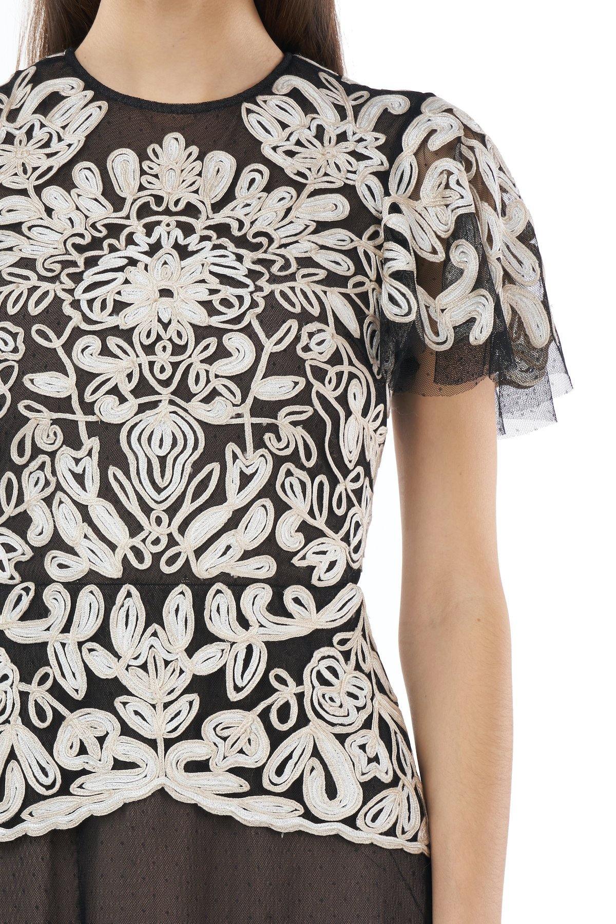 This elegant mother of the bride long formal dress features a short sleeve crew neck with soutache bodice and is made of mesh. Perfect for any special occasion.