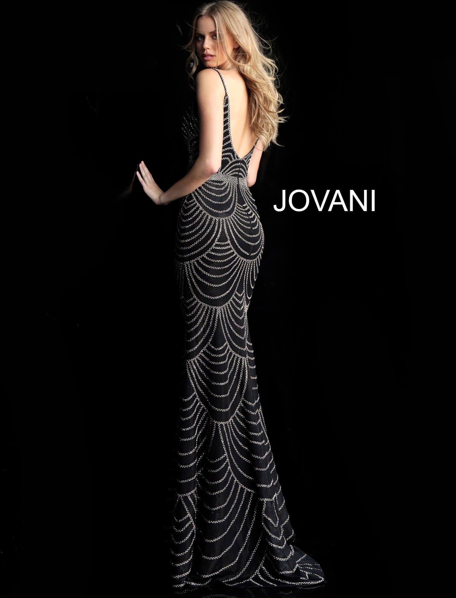 This elegant long dress features a spaghetti straps edging the wide V-neckline and open V-back. Fitted dress embellished all over with silver scalloped beadwork  with matching beadwork accentuates the waist, leading to the slim-flare skirt and brush train. This dress if perfect for formal, evening party or any special occasion.