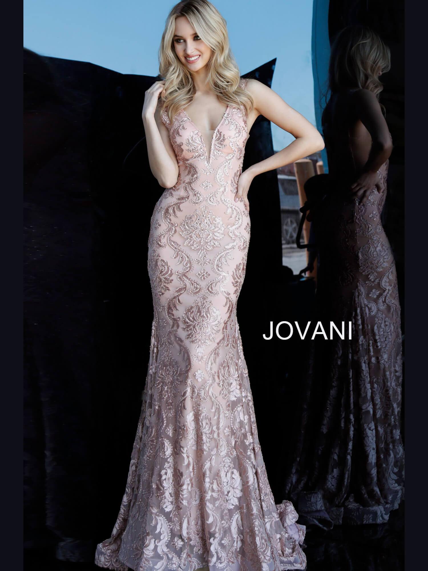 This gorgeous long dress features a sleeveless with a mesh insert plunging V-neckline and an open V-back. Fitted dress in beaded lace embroidery and side and back godets flow into a horsehair hem and sweep train. This dress if perfect for formal, evening party or any special occasion.