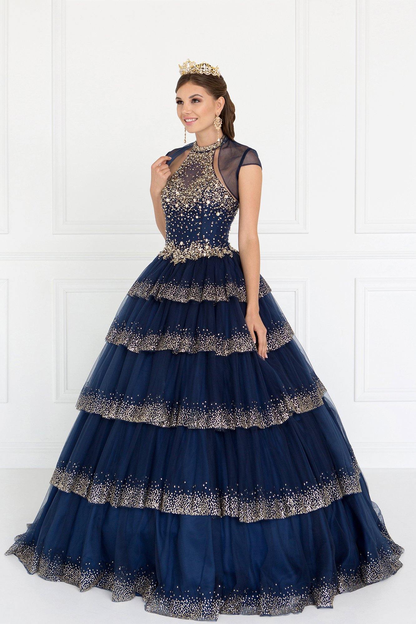Layered Tulle Halter Quinceanera Dress with Jewels and Bolero