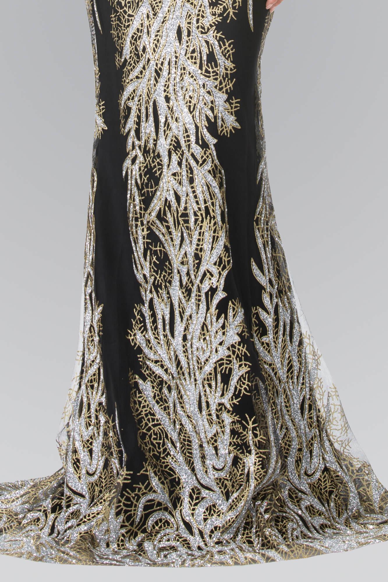 This long dress featuring jewel neckline of sheer fabric. Beaded appliques heavily garnish the form-fitting silhouette from the top cascading down the full length finish. Perfect for formal, evening party or any special occasion.