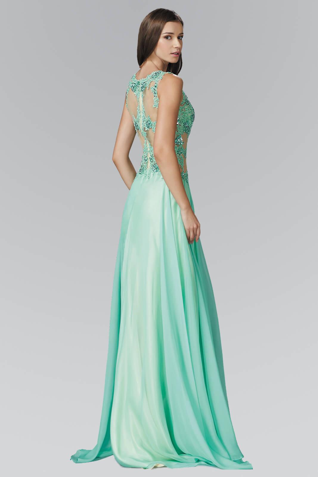 This long dress features a sleeveless crew neckline with lace sequins accentuated the bust and hips over the fitted sheer bodice and made of chiffon skirt material. Perfect for formal, evening party or any special occasion.