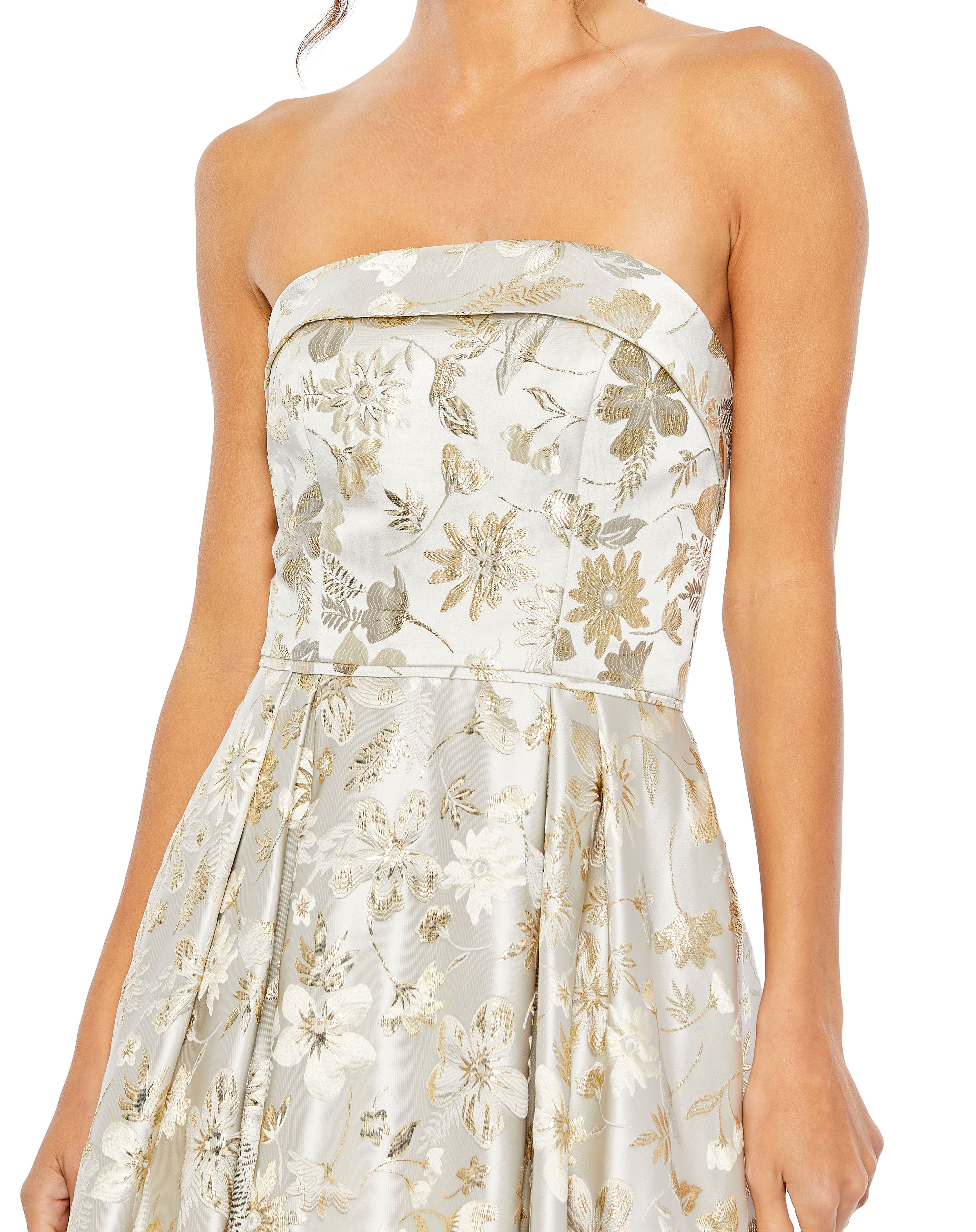 Experience elegance with Mac Duggal 49619. Adorned with beautiful floral prints, this stunner features a strapless bodice, a straight-across neckline, and a cinched waistband. The back secures with a center zipper, while the A-line skirt flows to a full-length hemline and a sweep train finish. Make a captivating entrance in this gorgeous Mac Duggal 49619.