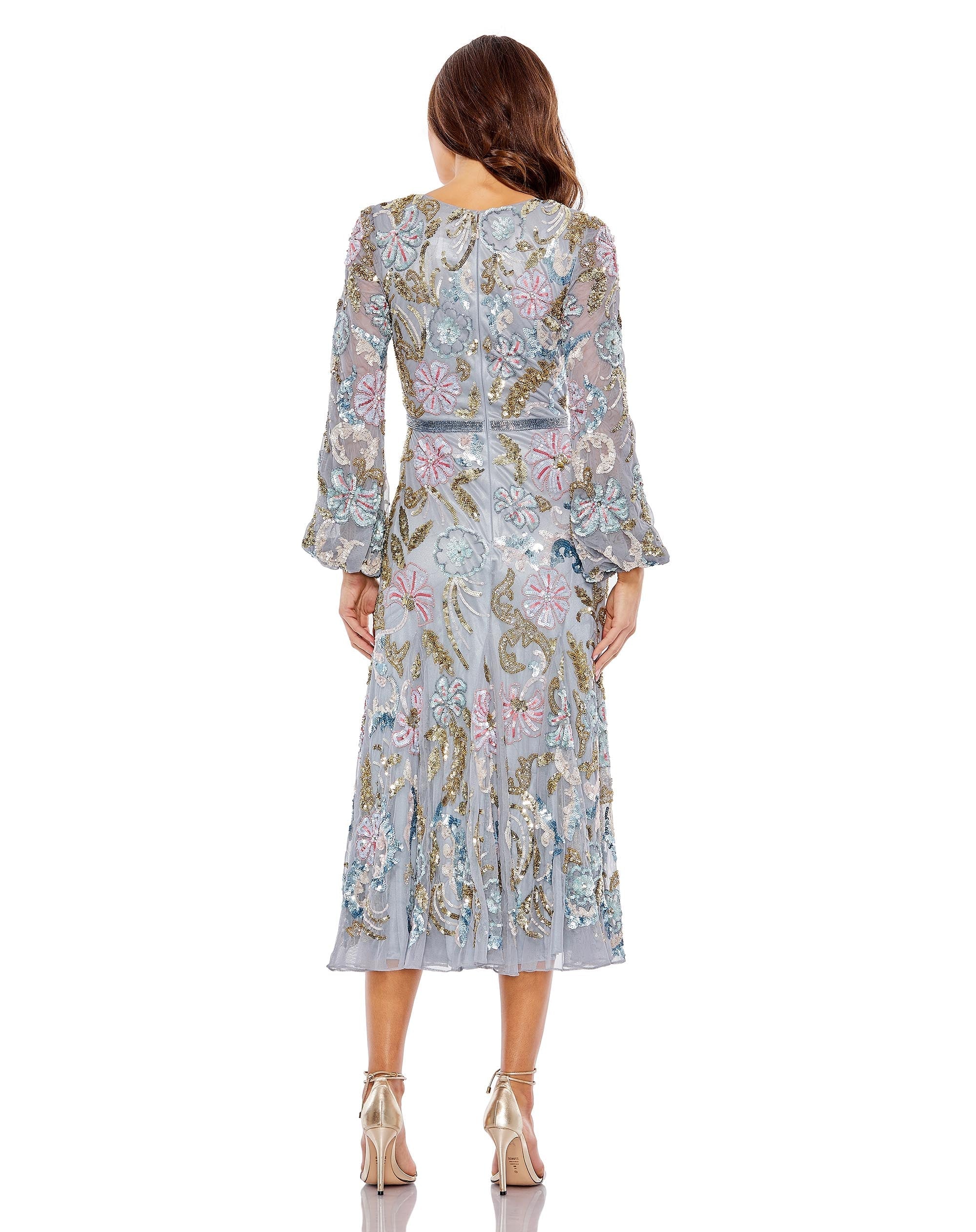 Mac Duggal 5423 Long Sleeve Sequin Cocktail Midi Dress