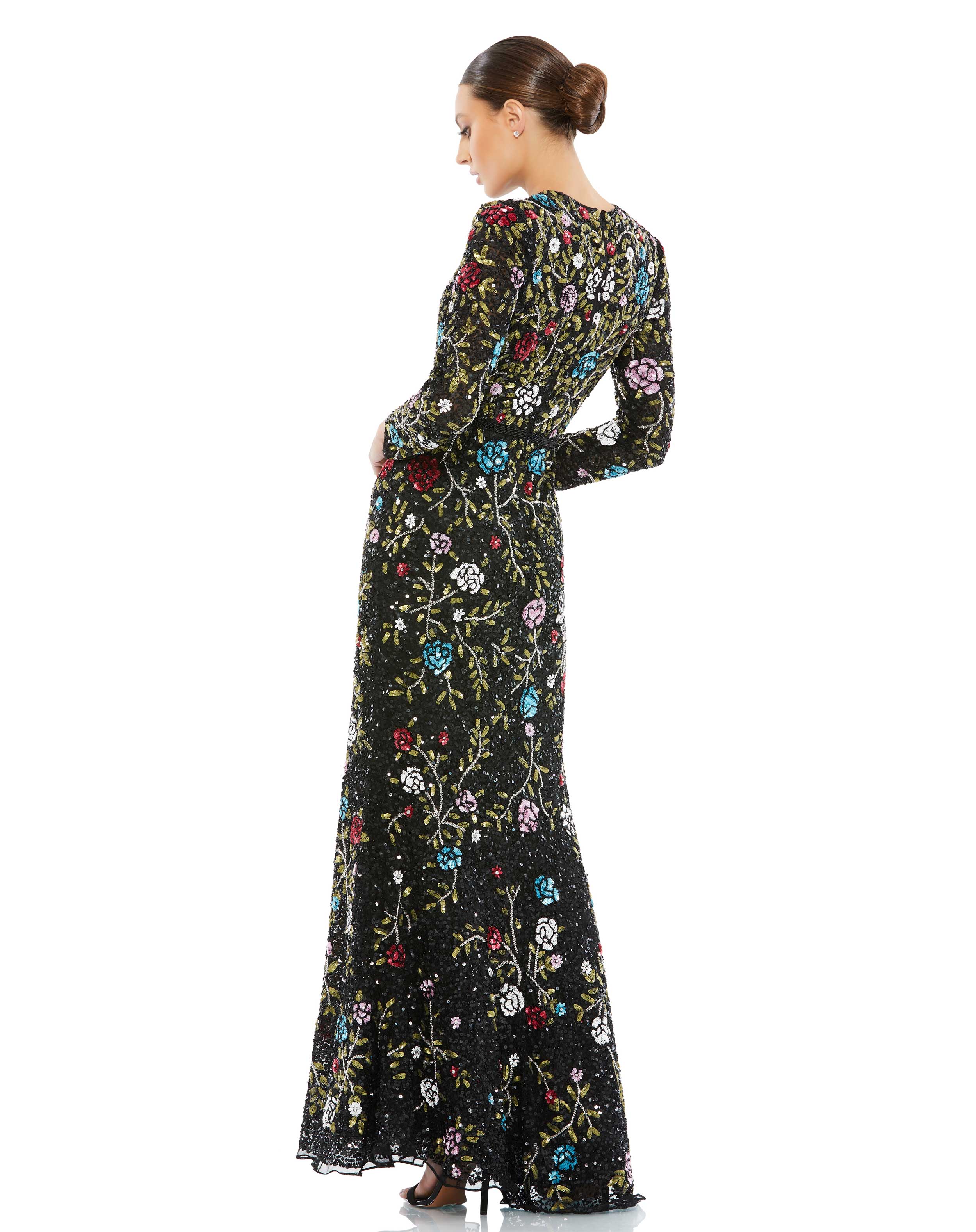 Mac Duggal 5556 Long Sleeve Floral Sequin Formal Dress