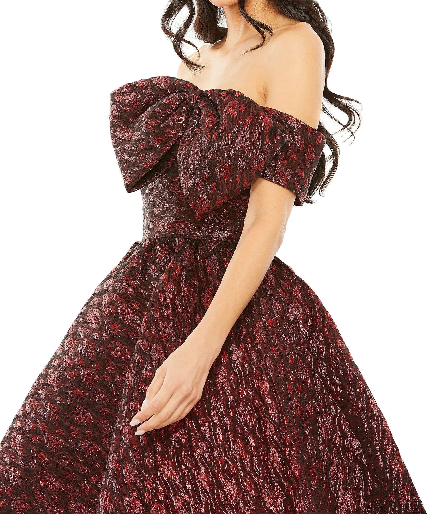 Mac Duggal 68622 Brocade Off Shoulder Bow Detail Short Dress
