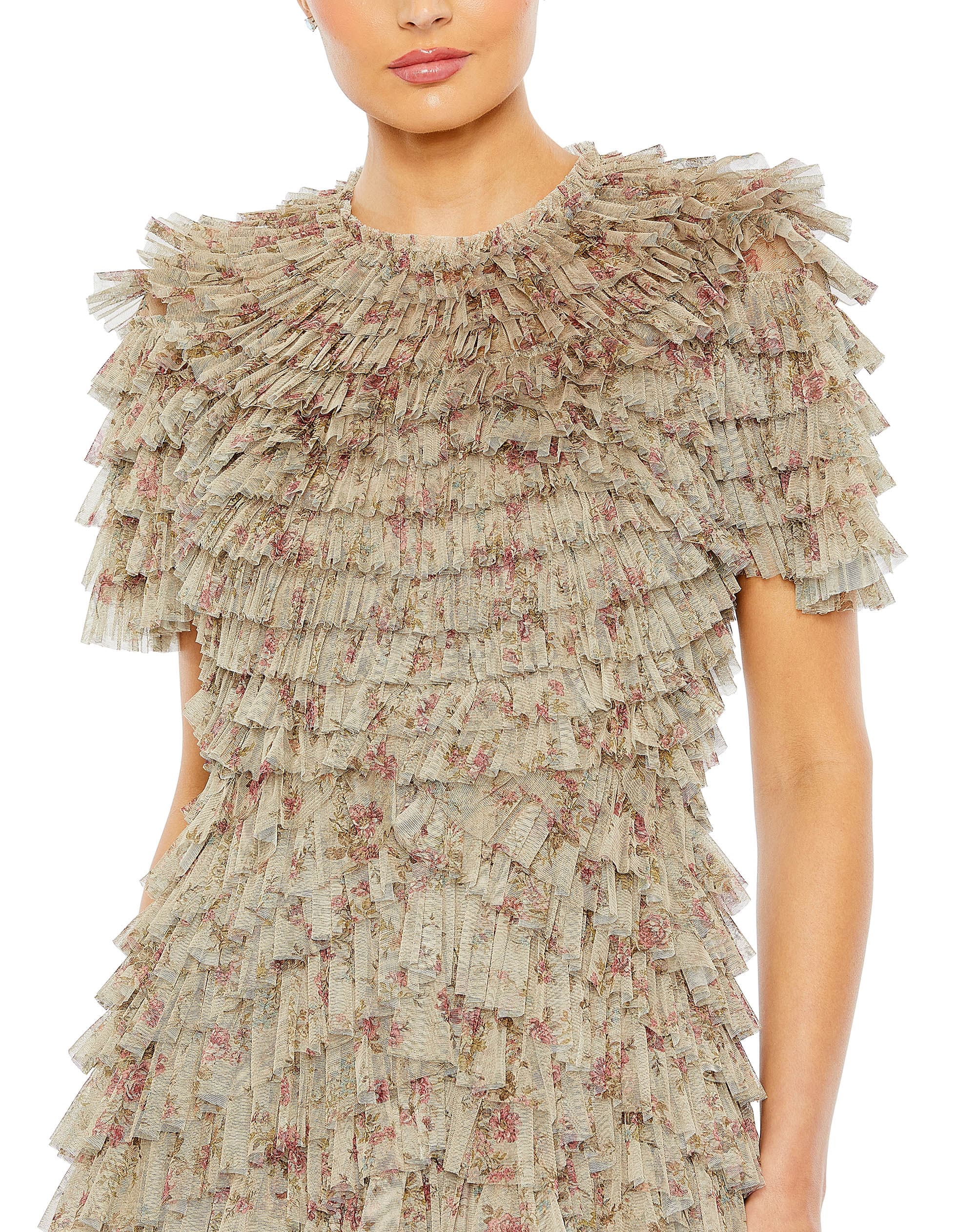 With the Mac Duggal 8017 Long Ruffle Tiered A-Line Formal Gown, enter a world of elegance. This stunning dress has an elegant A-line style with tiers of cascading ruffles that give your appearance more volume and movement. The flowing skirt guarantees a charming presence at any formal event, while the fitted bodice exquisitely highlights your waist. This elegant gown, which is made of premium fabrics, is comfortable and stylish, making it ideal for galas, weddings, and proms. Make a grand impression and embrace classic splendor with the Mac Duggal 8017 Ruffle Tiered A-Line Formal Gown.