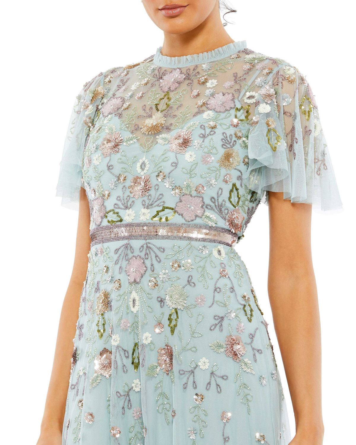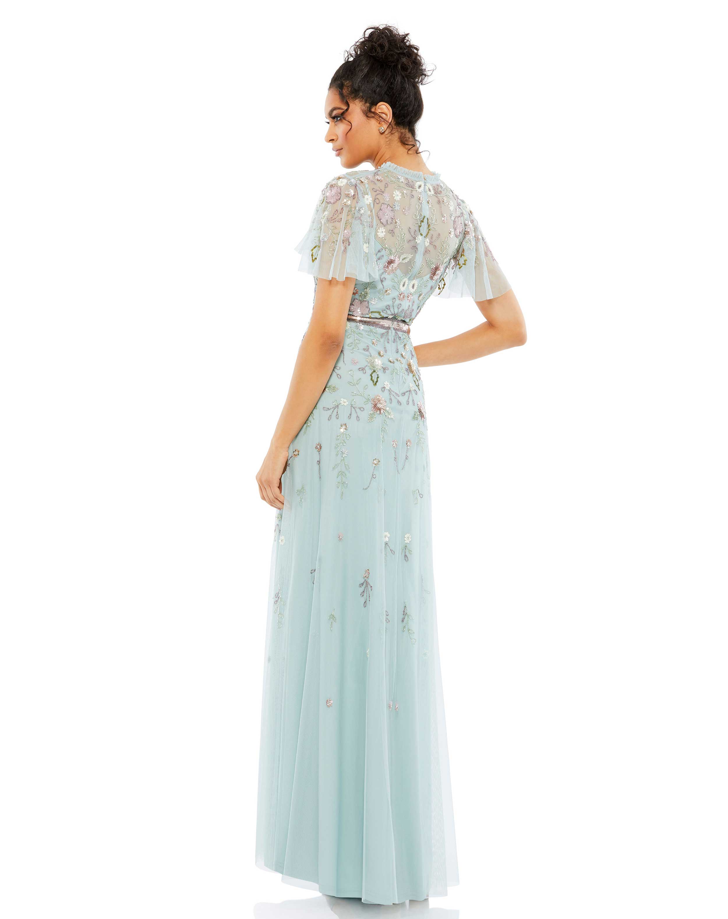 The Mac Duggal A9136 Formal Long Embellished Gown will help you enter the world of luxury. This gorgeous gown is ideal for formal occasions like weddings and galas. Its magnificent decorations offer a sophisticated and sparkling touch. The lightweight mesh fabric gives an elegant and ethereal appearance, while the butterfly sleeves add a romantic and airy vibe. Your silhouette is enhanced by the fitted bodice and flowy skirt, giving you a polished and attractive image. This dress, which is made with great care and attention to detail, blends comfort and design to make you feel beautiful and confident for any special occasion.