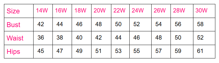 Sizes : 14W, 16W, 18W, 20W, 22W, 24W