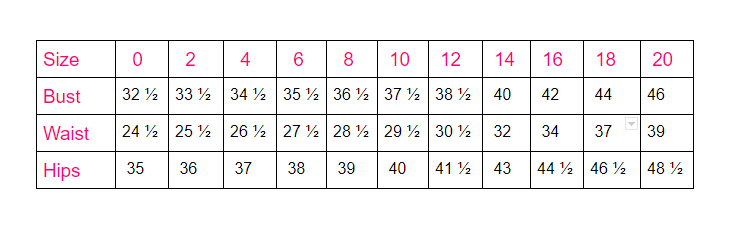 Sizes : 2, 4, 6, 8, 10, 12, 14, 16