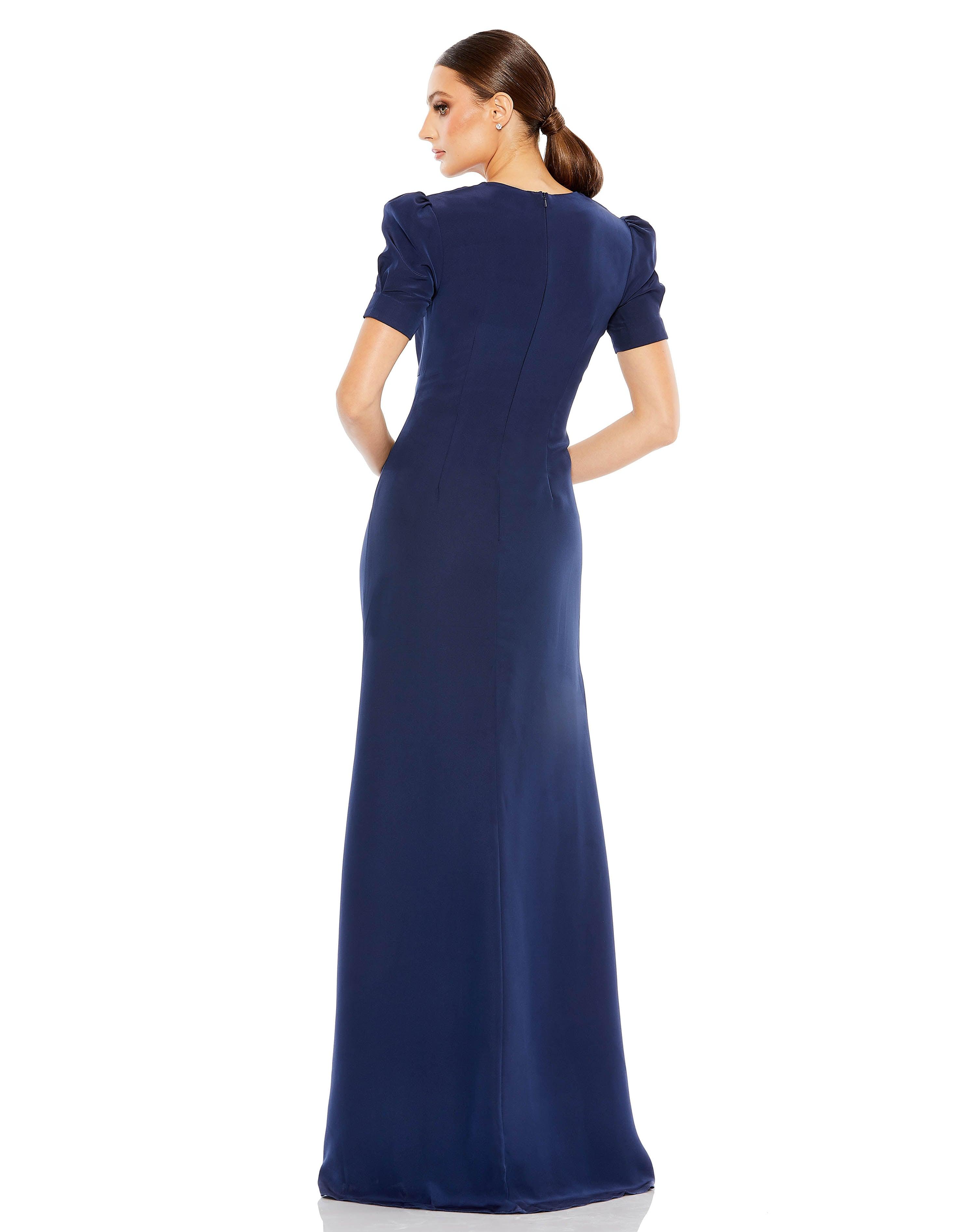 You'll be glamorous to the max in this stunningly gorgeous long dress. This stunning gown features short puff sleeve with plunging V-neckline and ends with a brush train. Say yes to this dress now. This stylish, versatile dress is just what you need.