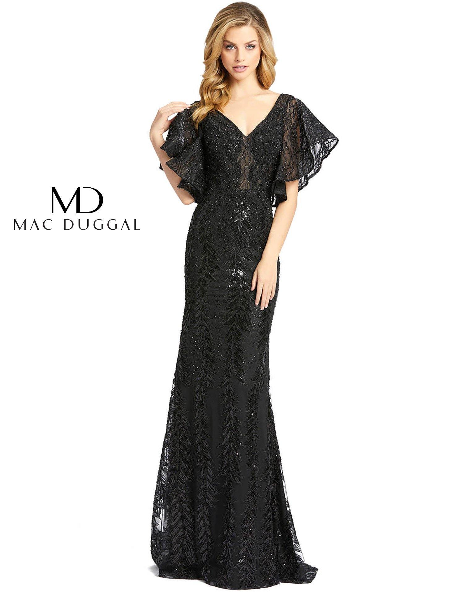 Mac Duggal Long Formal Short Sleeve Lace Dress