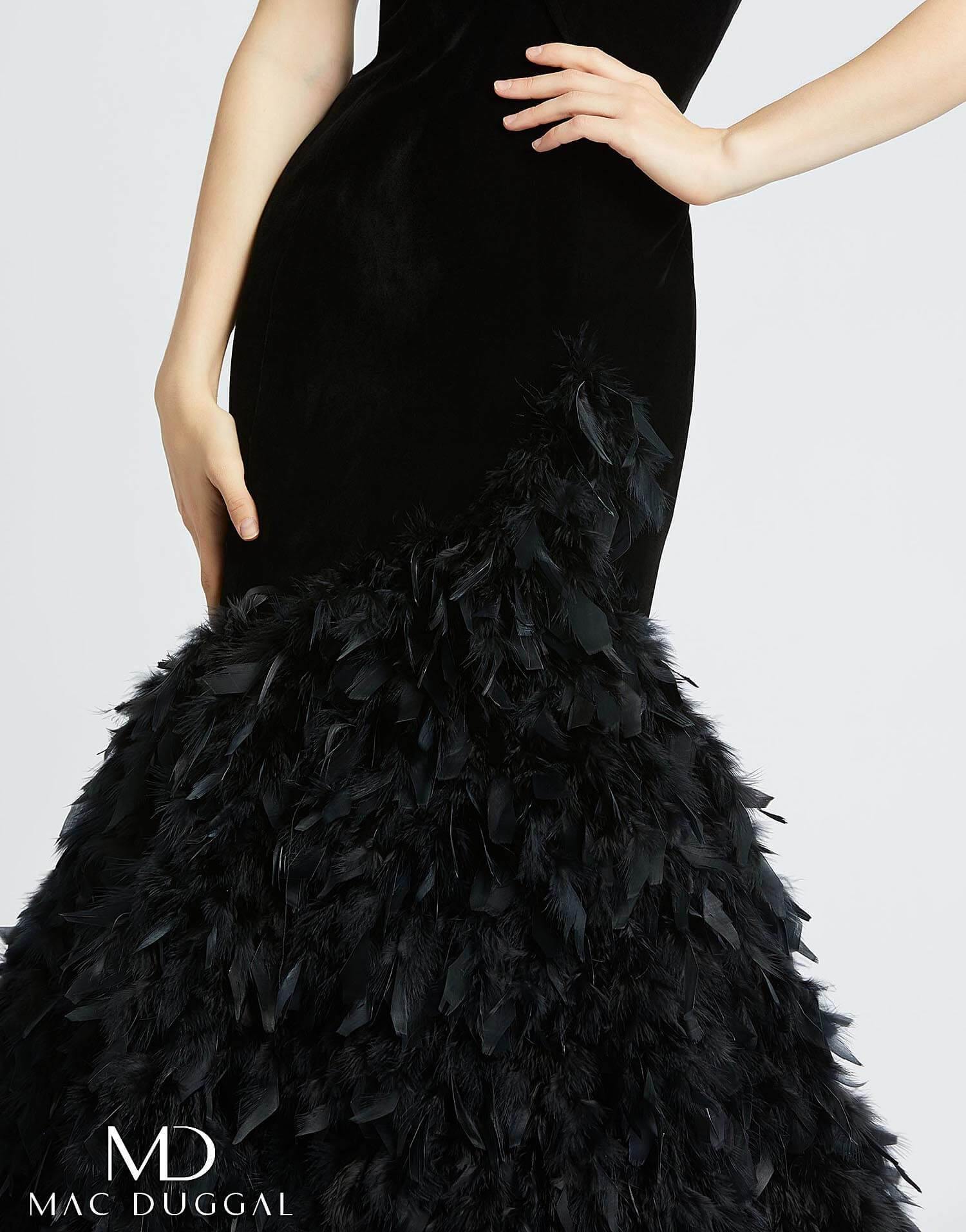 This stunning long dress features a mermaid velvet gown with flared sleeves. This enchanting dress flows in layers of feathers that fall to the floor. This black dress is perfect for your figure and makes you look fresh from the red carpet! Perfect for formal, evening party or any special occasion.