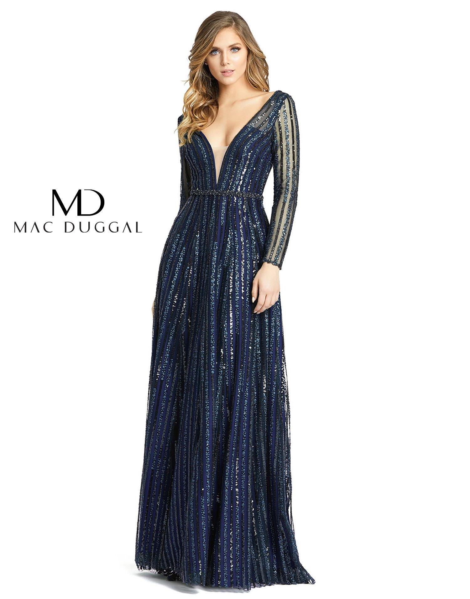Mac Duggal 11184 Long Sleeve Striped Sequins Dress