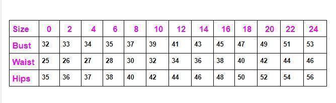 Sizes : 4, 6, 8, 10, 12, 14, 16