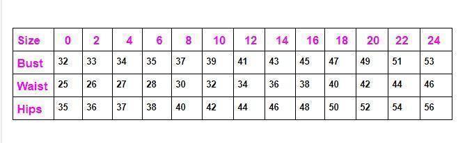 Sizes : 8, 12, 14, 16, 18, 20
