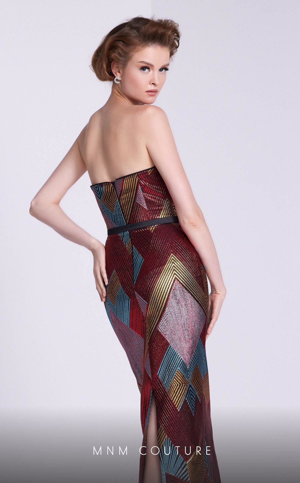 The MNM Couture N0590 is a striking strapless prom dress made from luxurious organza. This fitted gown features a corset bodice and a chic belt, creating a flattering silhouette. The detachable puff sleeves add a touch of drama and can be removed for a different look. With a back slit and full-length hem, this dress offers an elegant and versatile option for any formal event, allowing you to shine with confidence and style at prom or other special occasions.