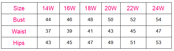 Sizes : 14W, 16W, 18W, 20W, 22W, 24W