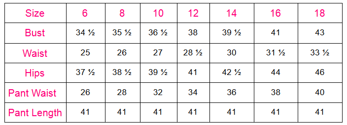 Sizes : 6, 8, 10, 12, 14, 16