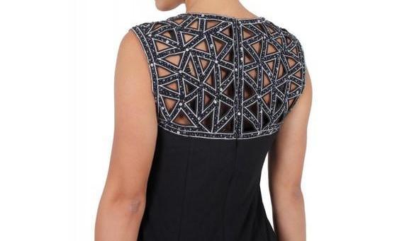 This dazzling fitted short dress features cap sleeve with embellished sequins shoulders and back and jersey material. Perfect for Cocktail, evening party and other special occasion