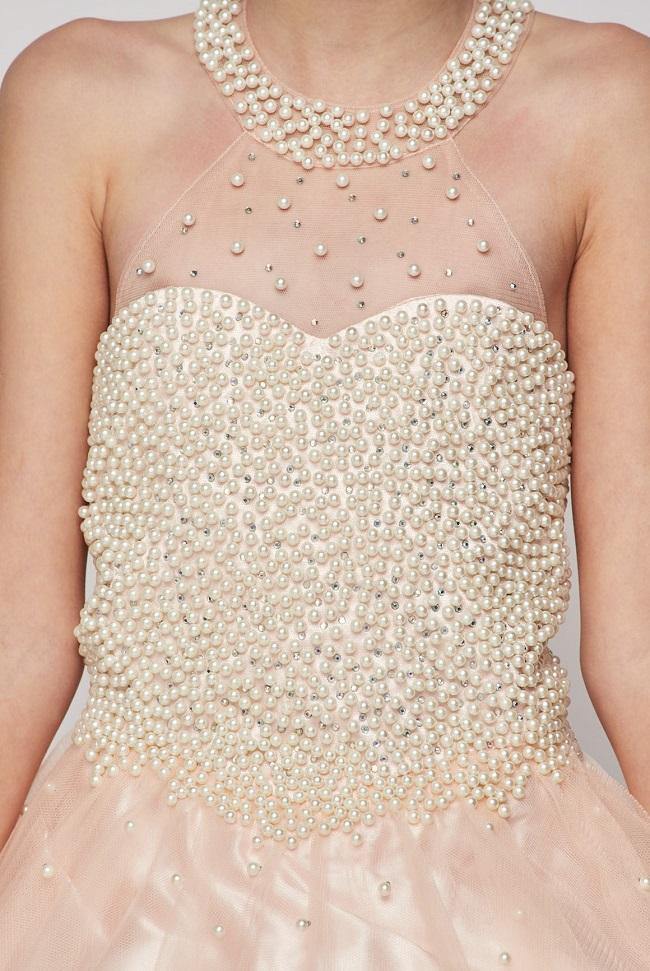 Pearl Halter Style Long Gown Flower Girl Dress