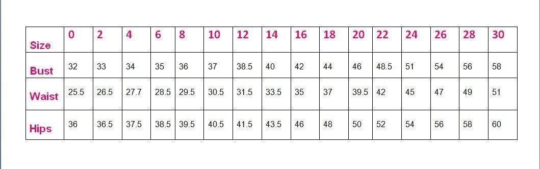 Sizes : 0, 2, 4, 6, 8, 10, 12, 14, 16, 18, 20
