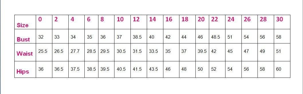 Sizes : 0, 2, 4, 6, 8, 10, 12, 14, 16, 18