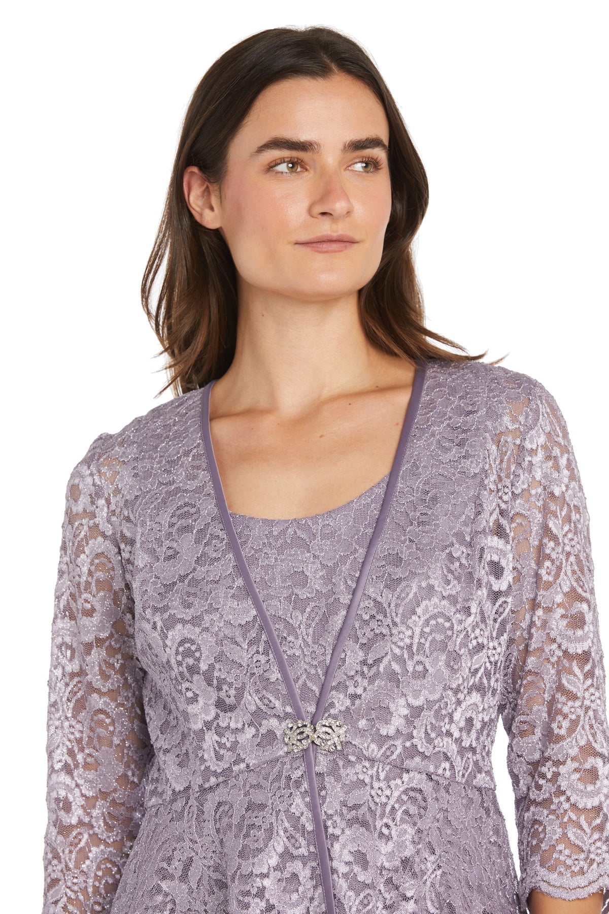 R&M Richards 1985 Long Glitter Lace Mother of the Bride Jacket Dress