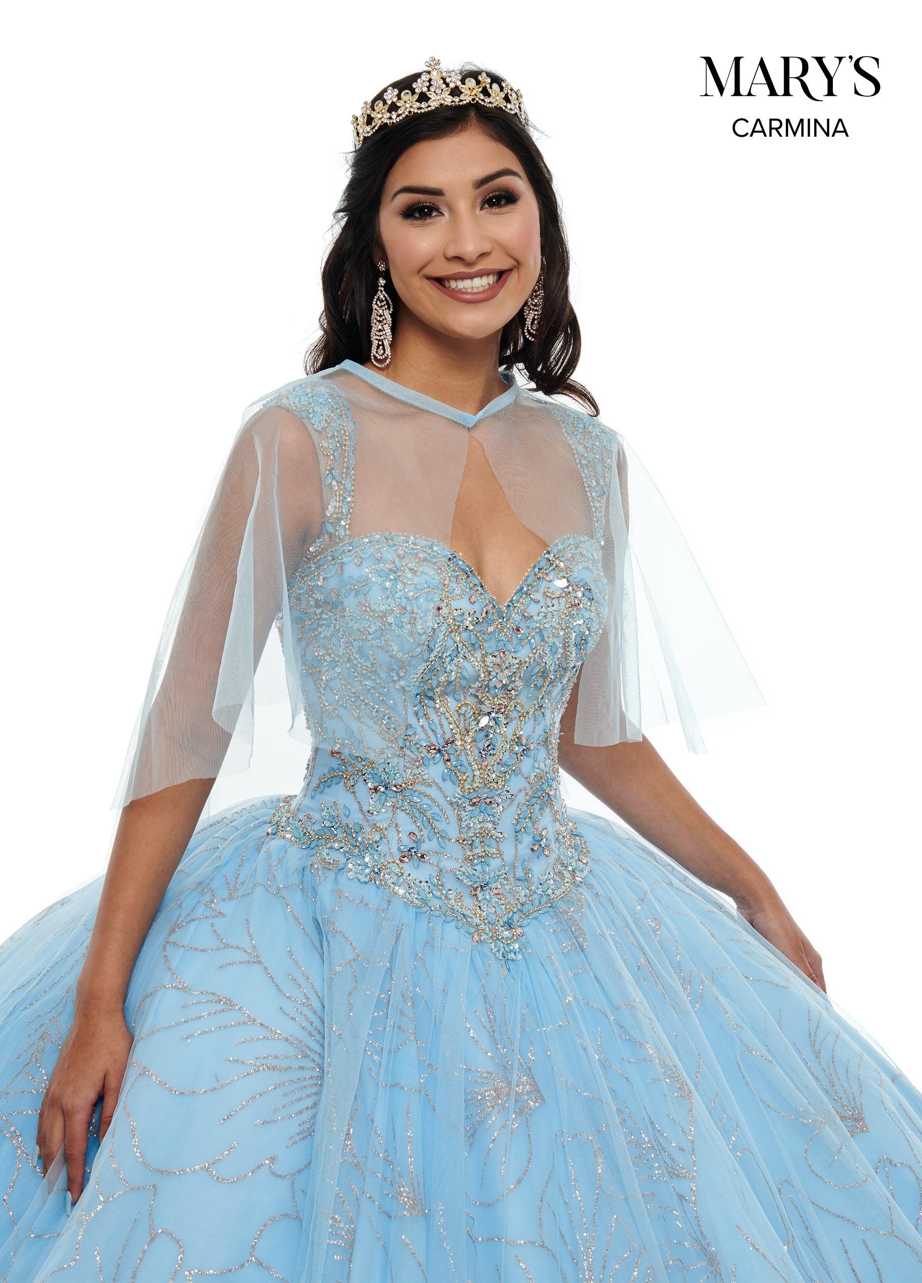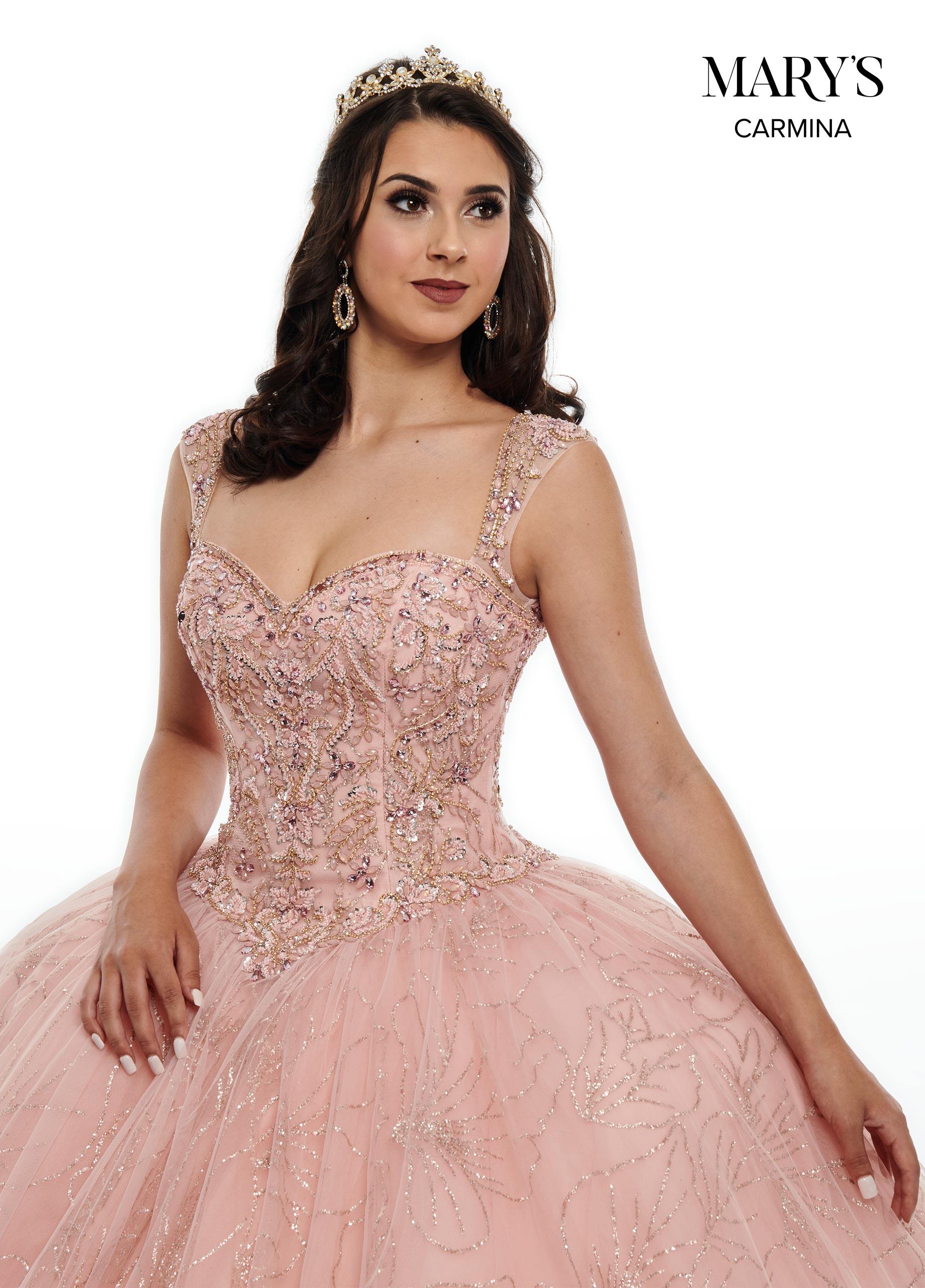 A sparkling party dress with a tulle colored sheen with a gorgeous neckline and a totally beaded top. The corsage, cap sleeves and castle collars crystallize and shine magically! The dress ends with a backlink closure and a move.