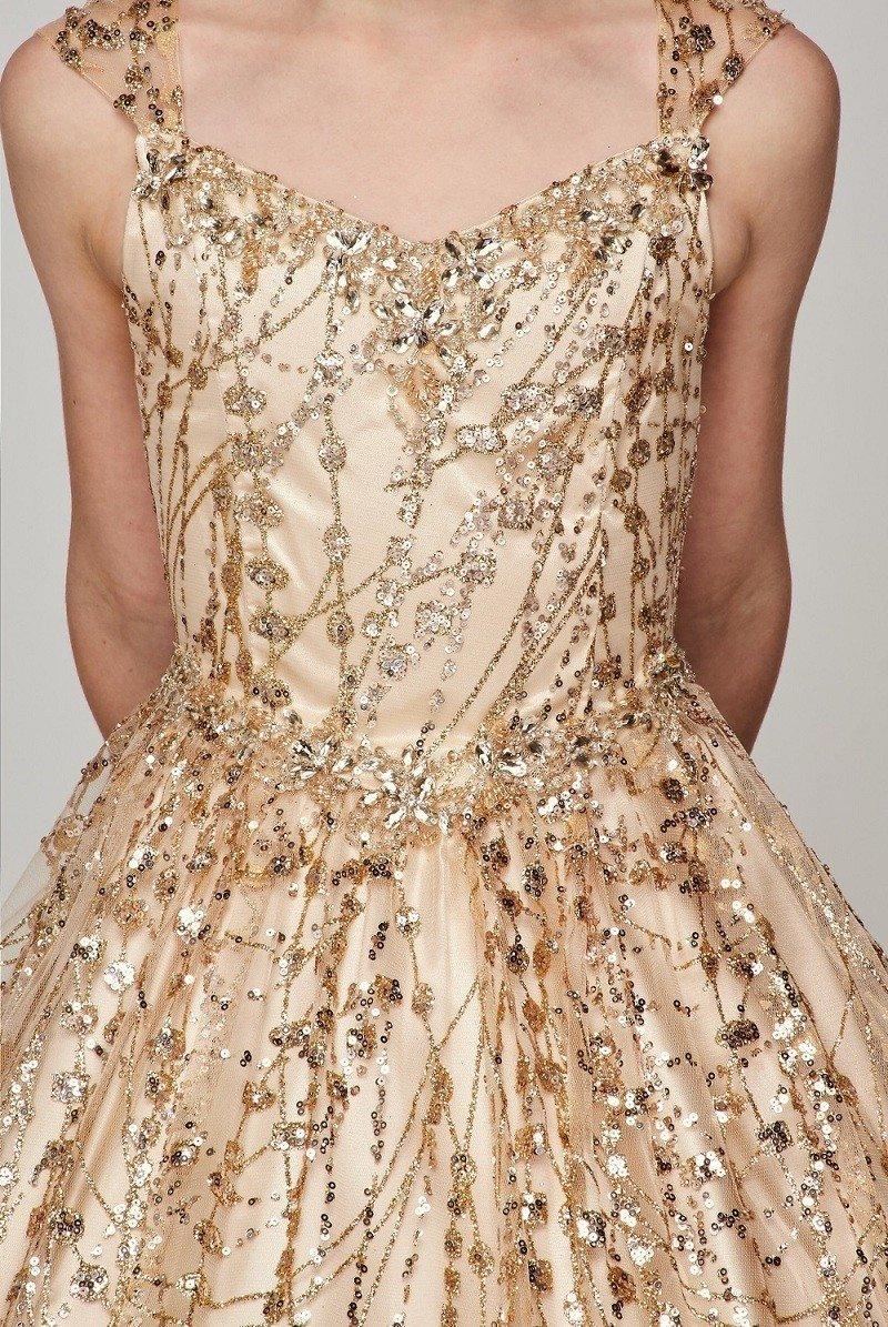 This dress will make any event a true royal affair. Look at the big pictures of this dress, so you appreciate the intricate details of this dress - clearly the cessation of the event. This dress is fully lined, so your princess feels comfortable. The dress has a corset for the back for special adjustments.