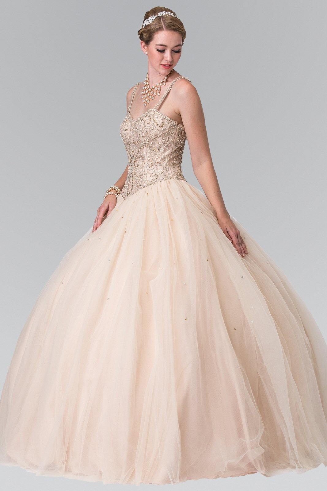 This gorgeous floor length dress features a spaghetti strapss sweetheart neckline. A-line dress with beads embellished bodice. Multi-layered A-line skirt  perfect for sweet 16, debut or any special occasion or any special occasion.