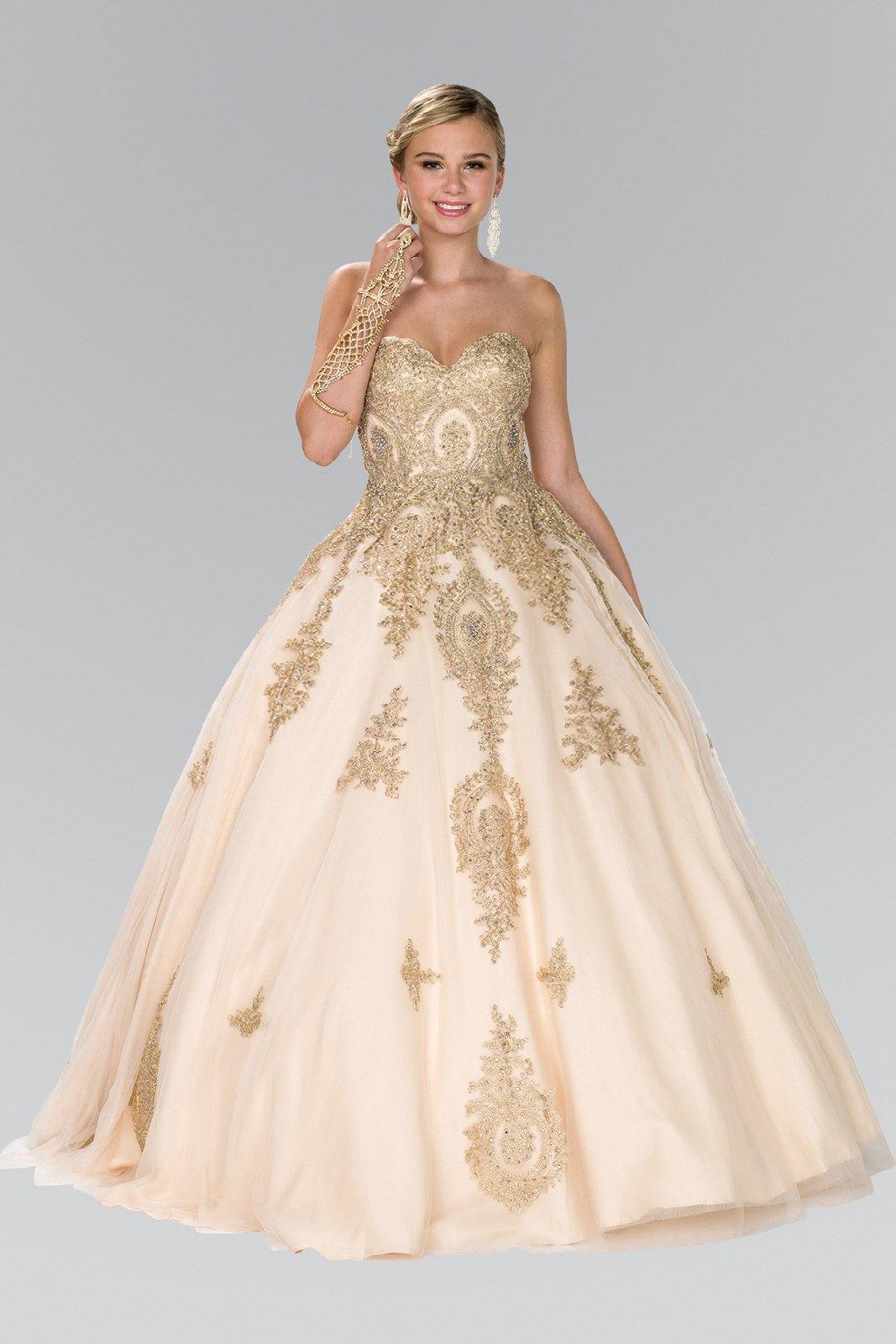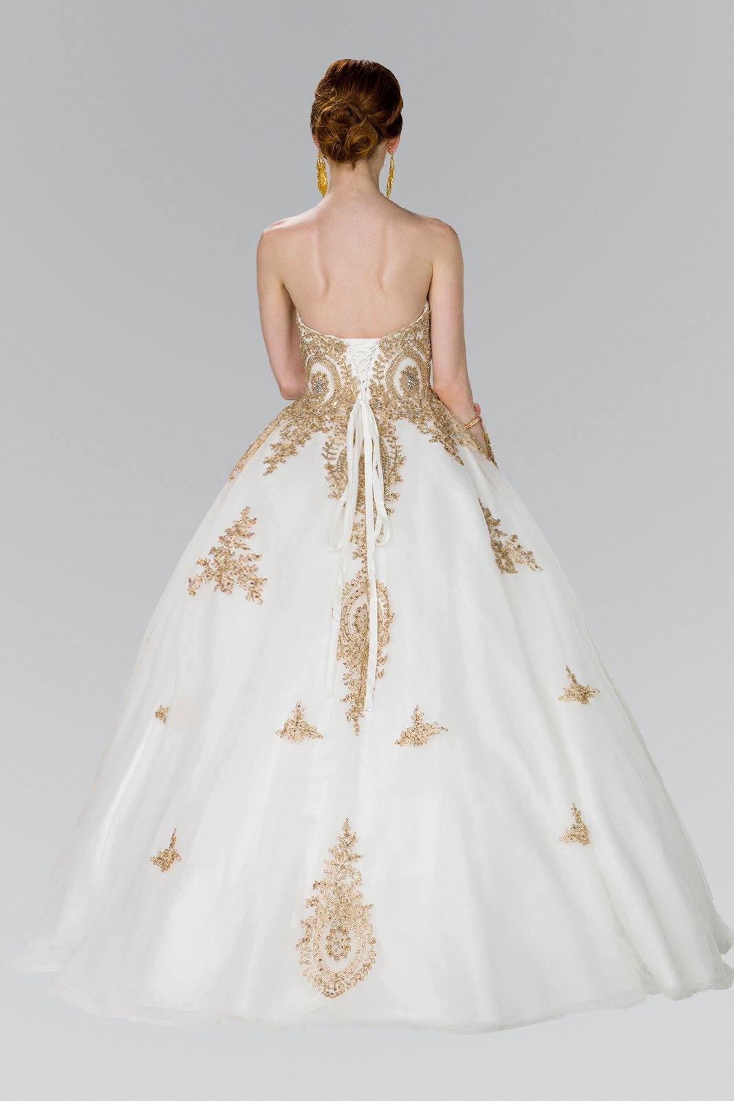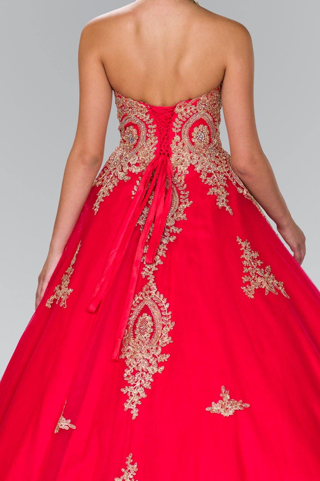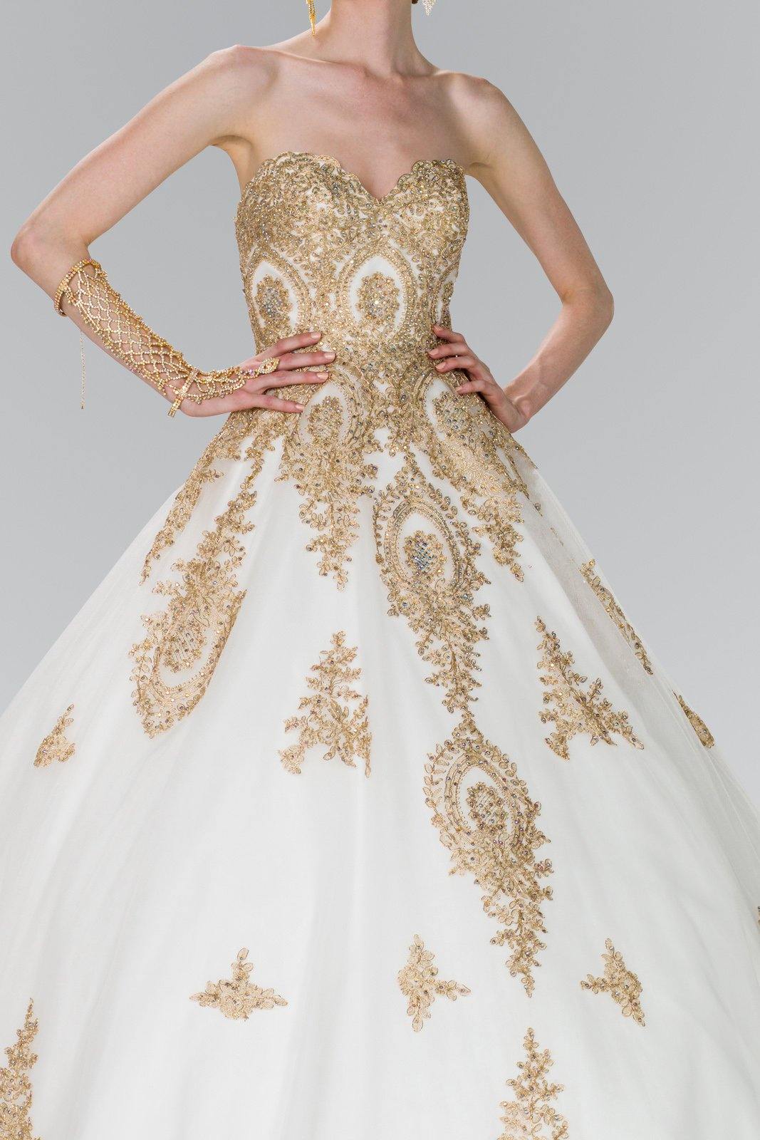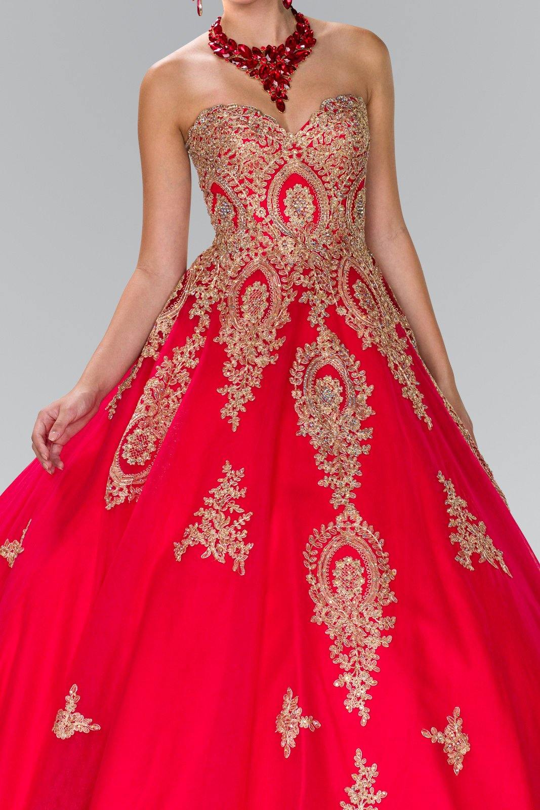 This stunningly gorgeous long dress features a strapless sweetheart neckline. Floor length A-line multi layered dress with embellished beads and lace applique design. This dress is perfect for any special occasion.