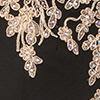 This elegant long prom dress features a sleeveless V-neckline. Fitted mermaid style dress with gold lace appliques bodice. This dress is perfect for any special occasion.